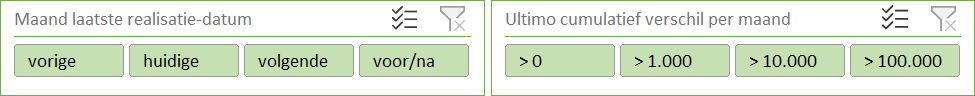 - Cumulatief verschil €: per Cashflow code t/m ultimo volgende maand (o.b.v. laatste bankdatum). Gesorteerd per Cashflow code op datum (van oud naar nieuw)