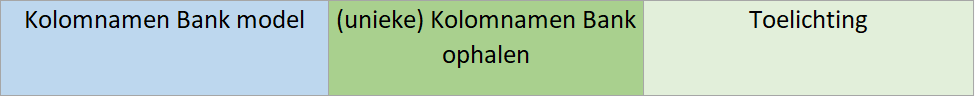 - Kolomnamen Bank model: Standaard door het model ingevuld.